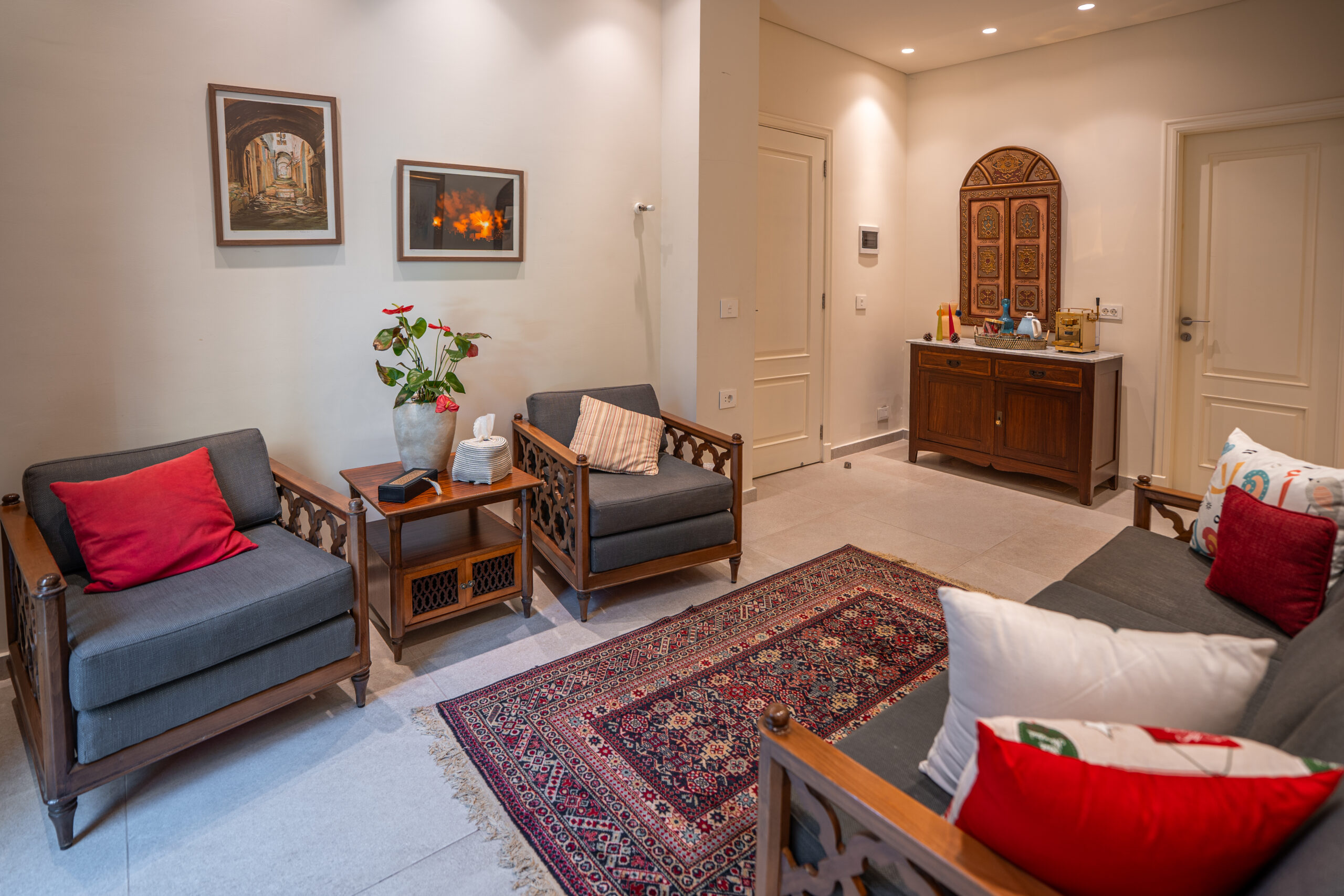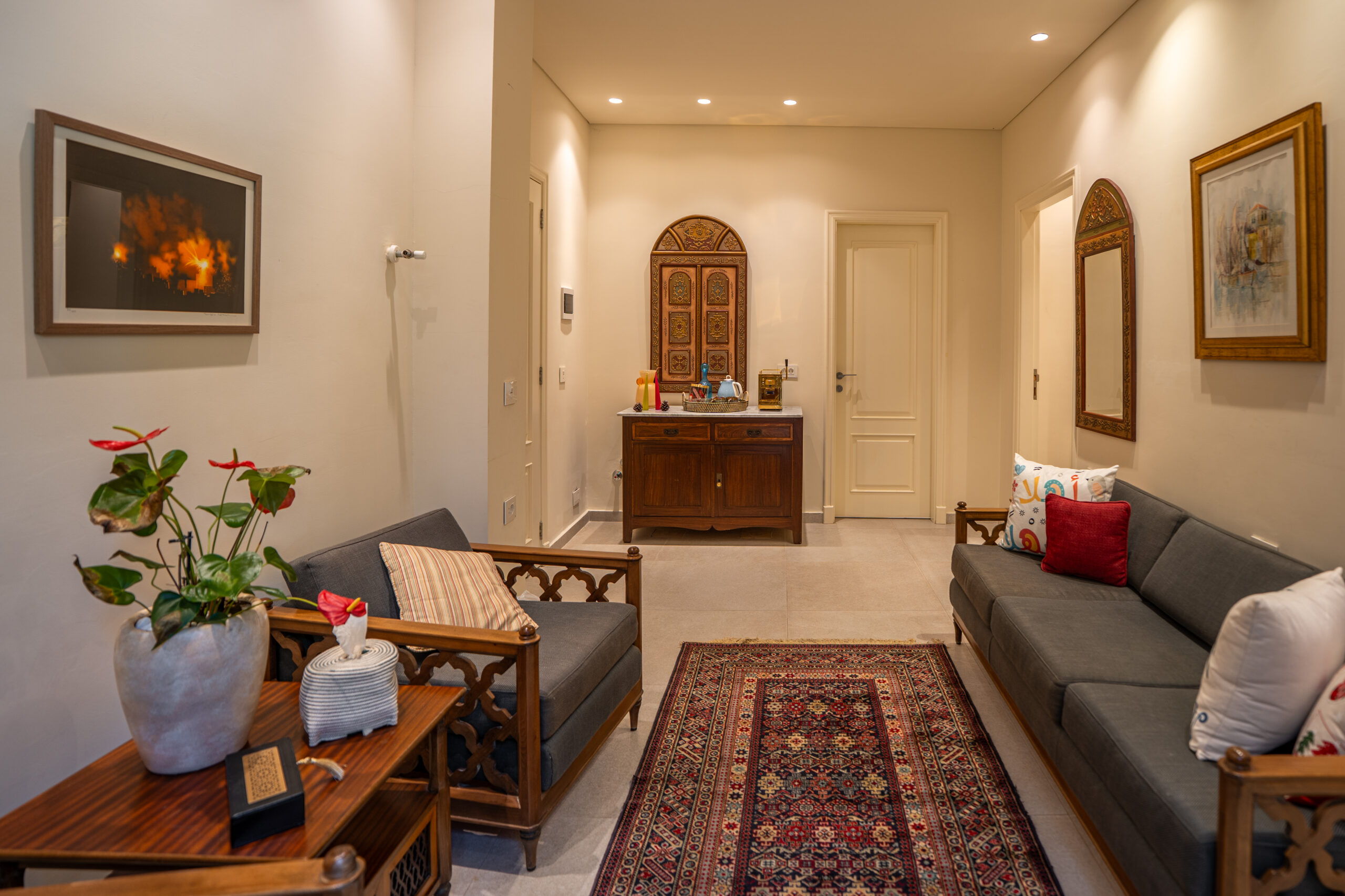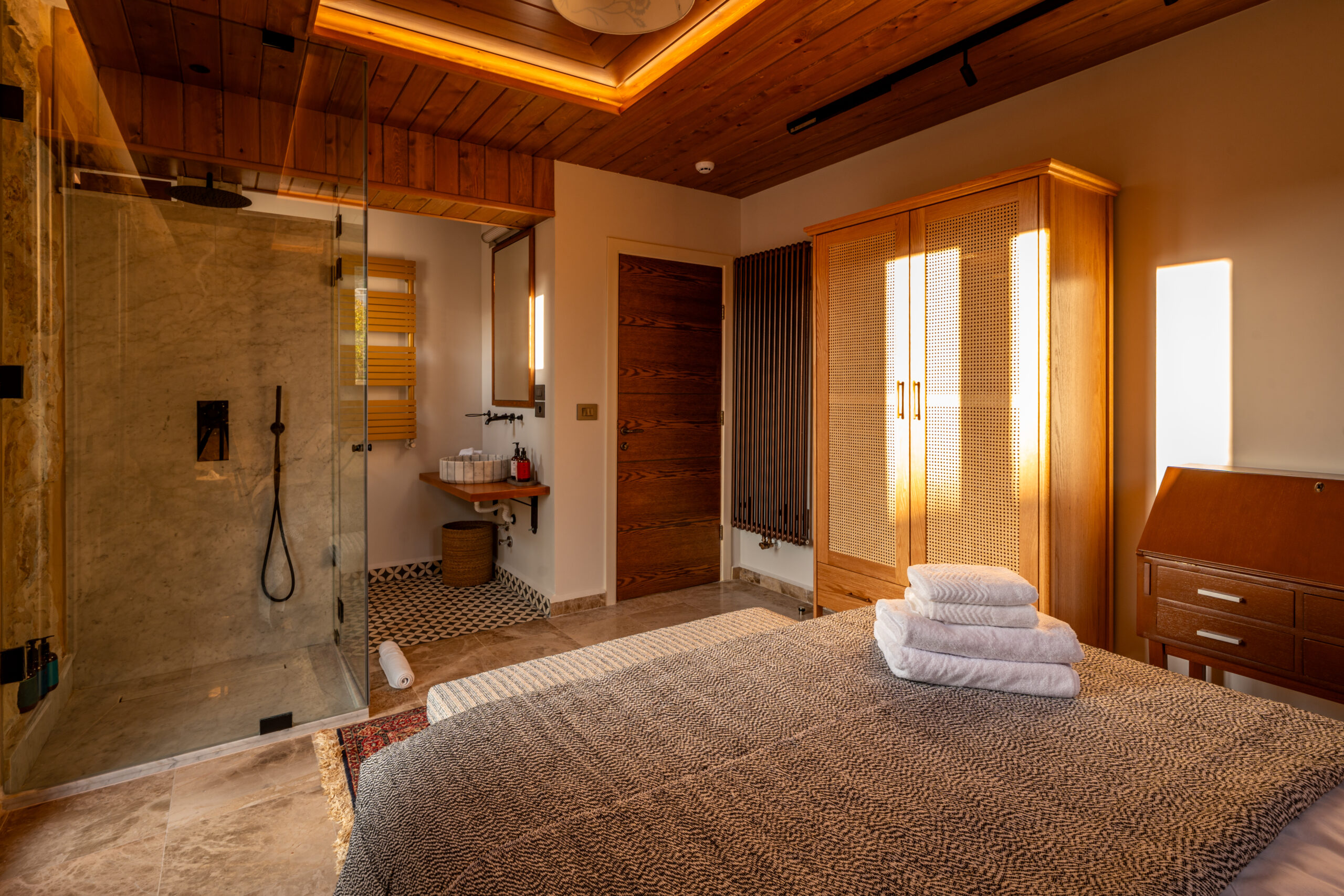 Inspired by Jezzine’s pine forest, offers two bedrooms with a shared bathroom, a comfortable lounge, and a coffee bar. It is ideal for families, groups, or couples seeking a home-like atmosphere, with an intimate setting and views of the outdoor space.