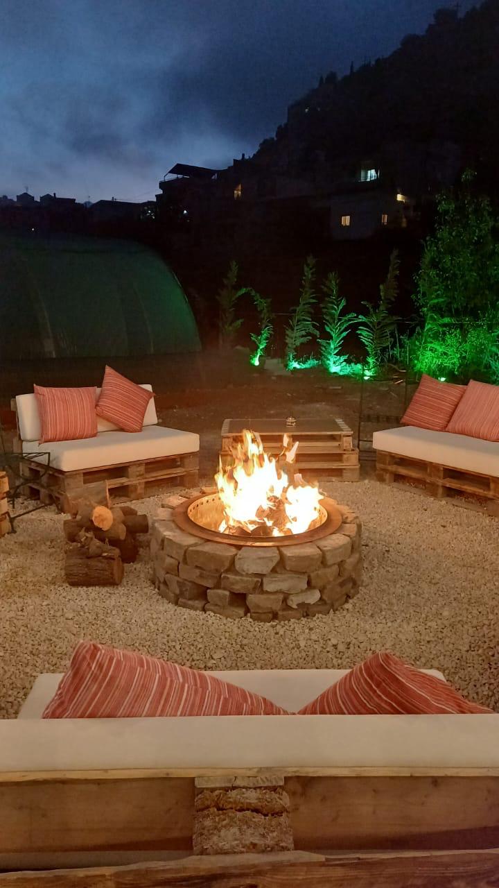The terrace at Dar Jezzine is a spacious, serene retreat for reading, meditating, or enjoying a morning workout. Ideal for breakfast, lunch, or dinner, it’s also perfect for a fresh coffee or a chilled beer. Equipped with an Italian oven, a premium coffee machine, and a beer dispenser, it has everything guests need to relax and savor the moment.