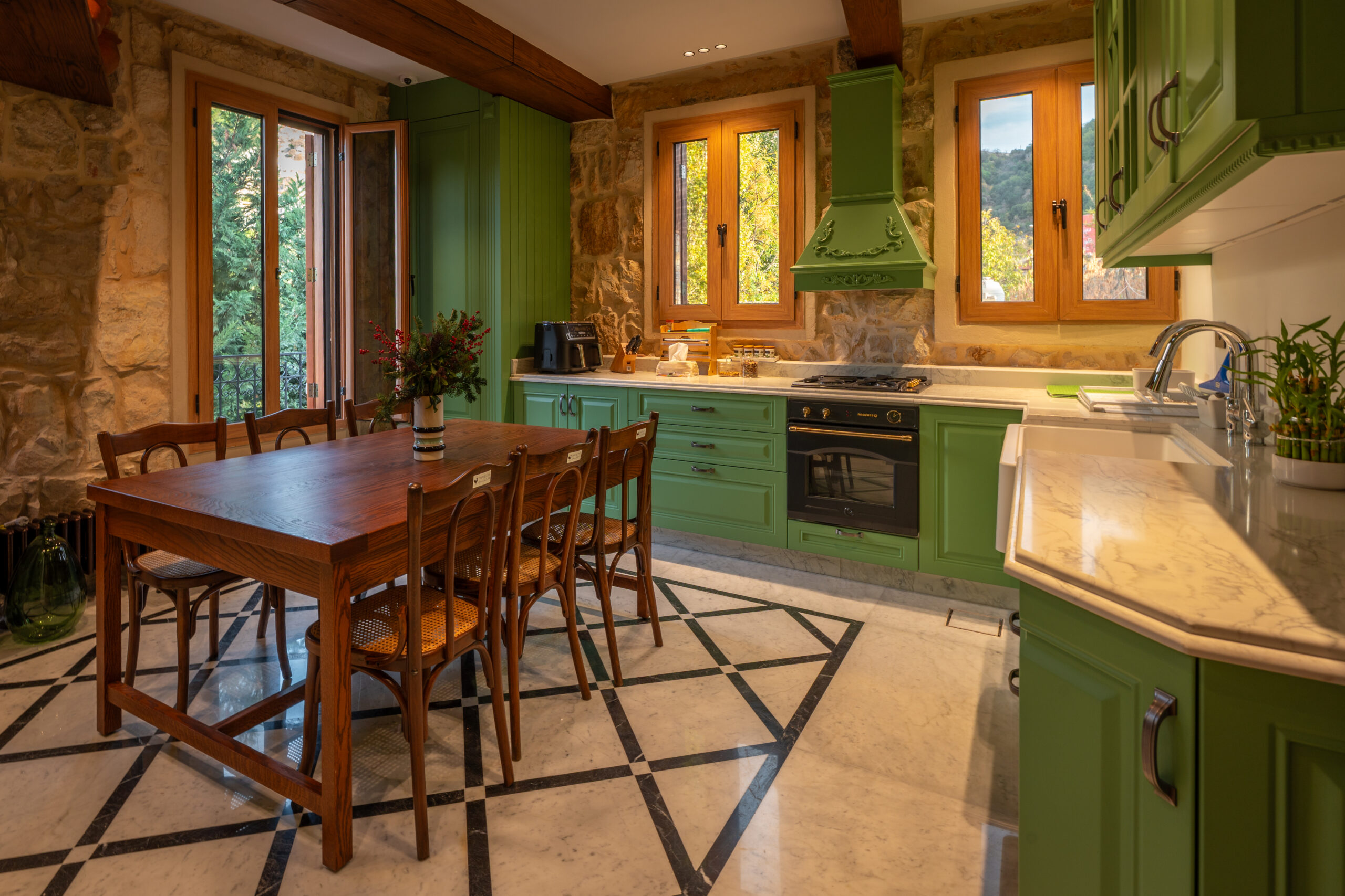 The kitchen at Dar Jezzine is a warm and convivial space, where aromas, laughter, and memories mingle as meals are lovingly prepared, just like at home.